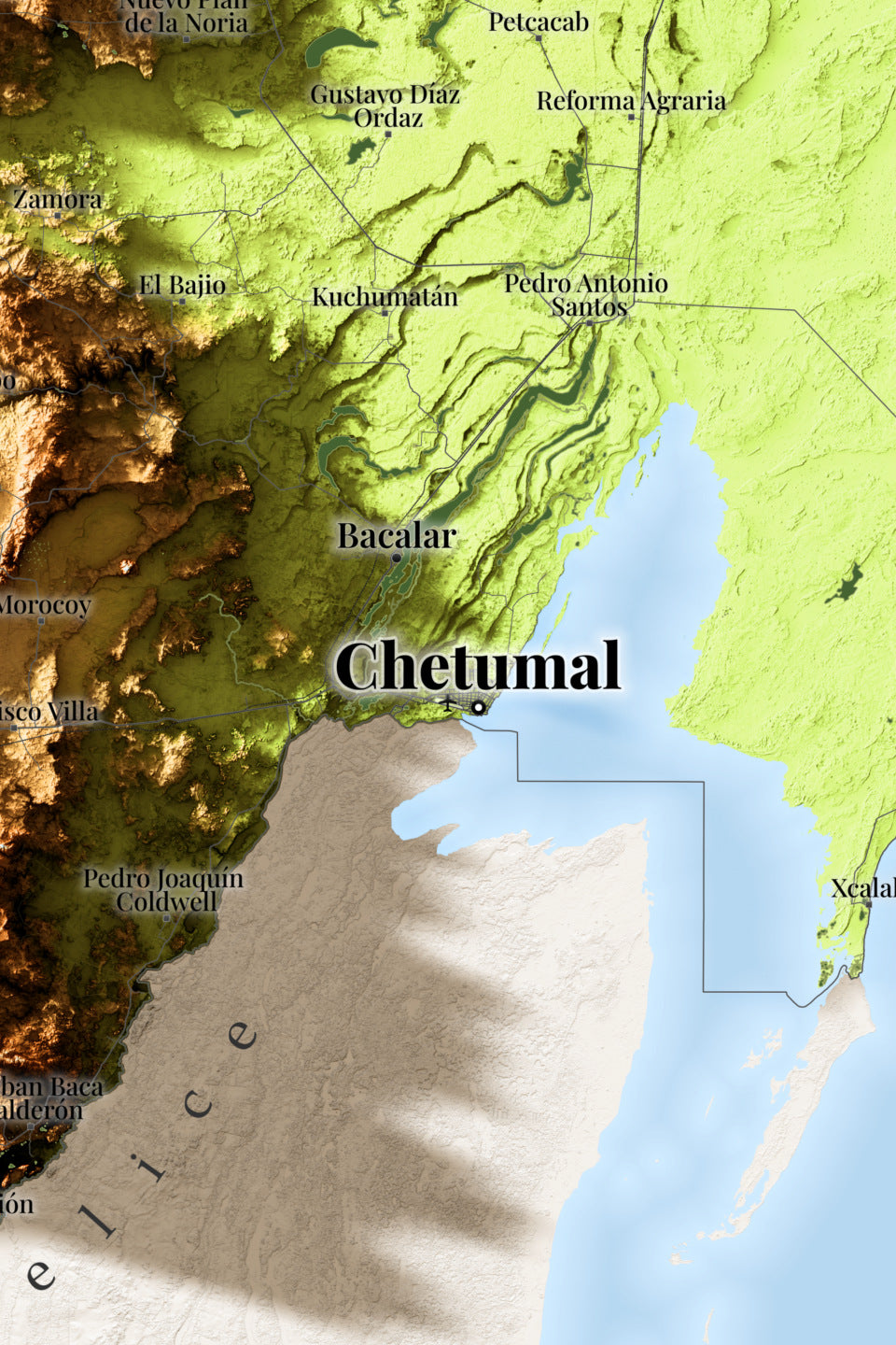 Quintana Roo, Mexico – Elevation Shaded Relief Map | Fine Art Print